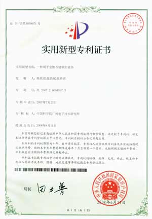(1)2006年6月立項(xiàng)的《金剛石鏈鋸的研制》項(xiàng)目榮獲國家科技部科技型中小企業(yè)創(chuàng)新基金。并于2011年3月通過國家科學(xué)技術(shù)部科技型中小企業(yè)技術(shù)創(chuàng)新基金管理中心的正式驗(yàn)收。